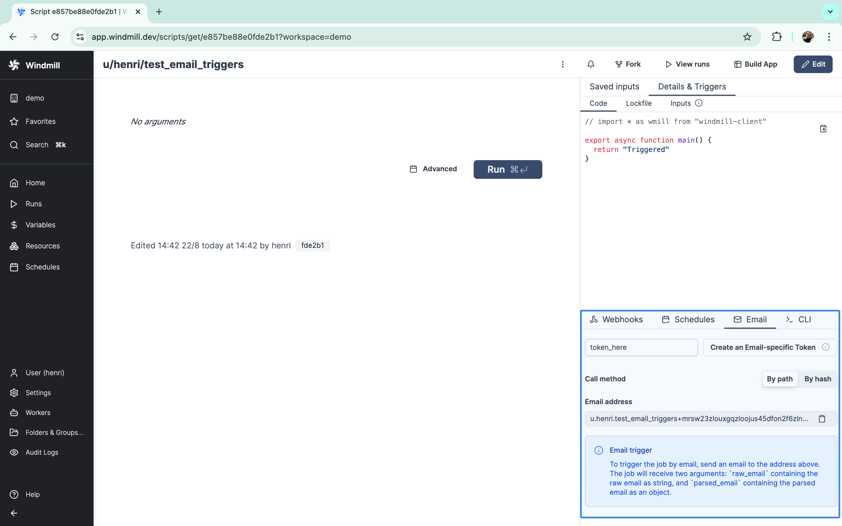 Email triggers on Windmill Community Edition are limited to 100 emails per day.