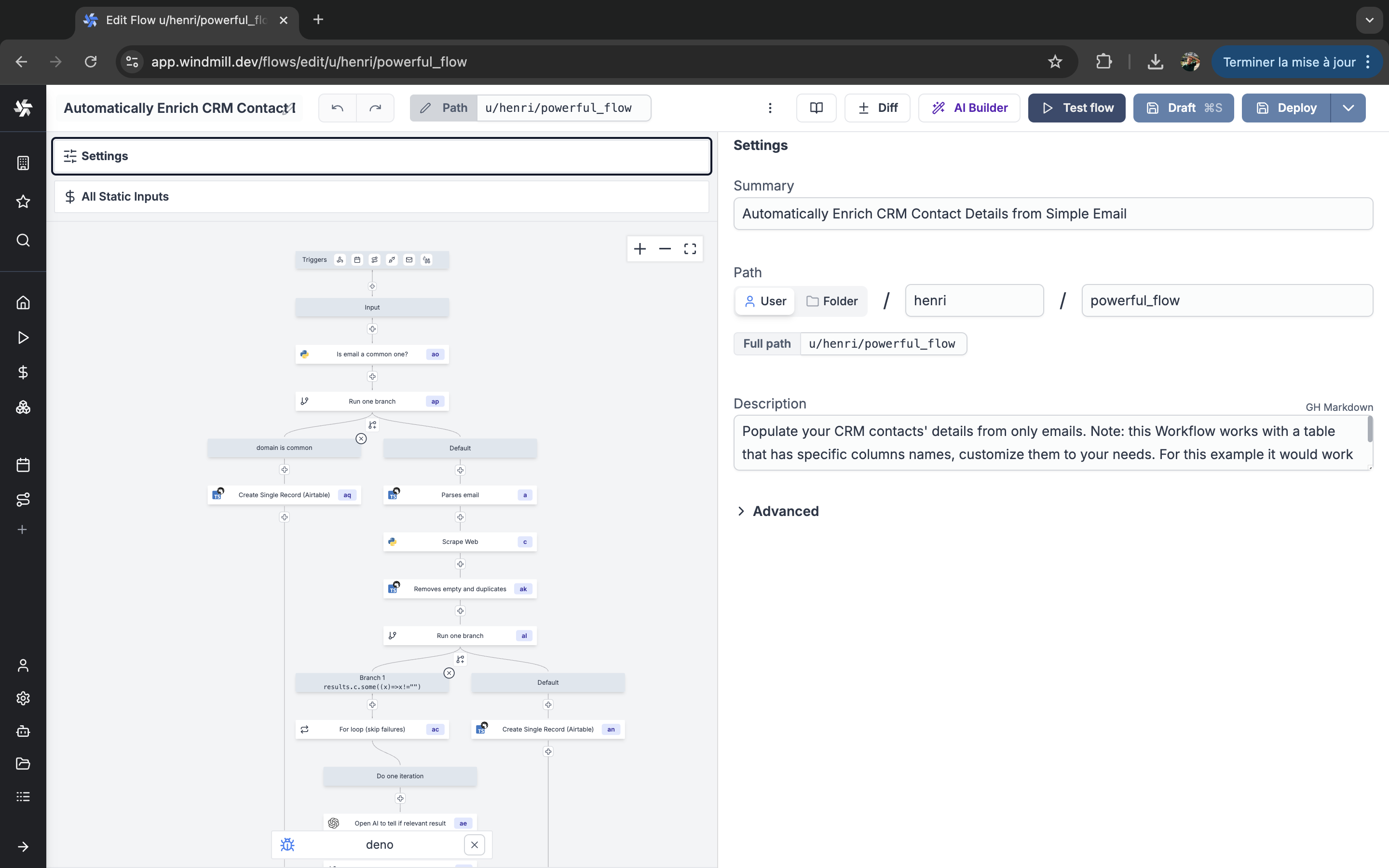Windmill's Flow editor allows you to build flows with a low-code builder.